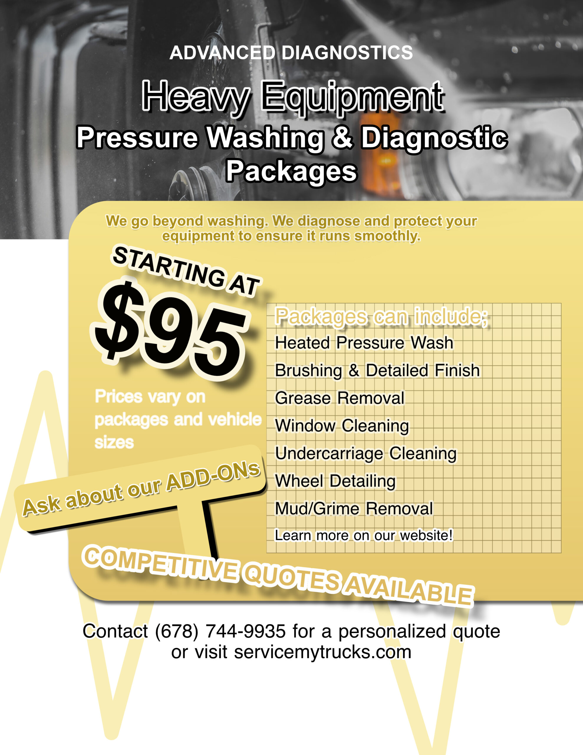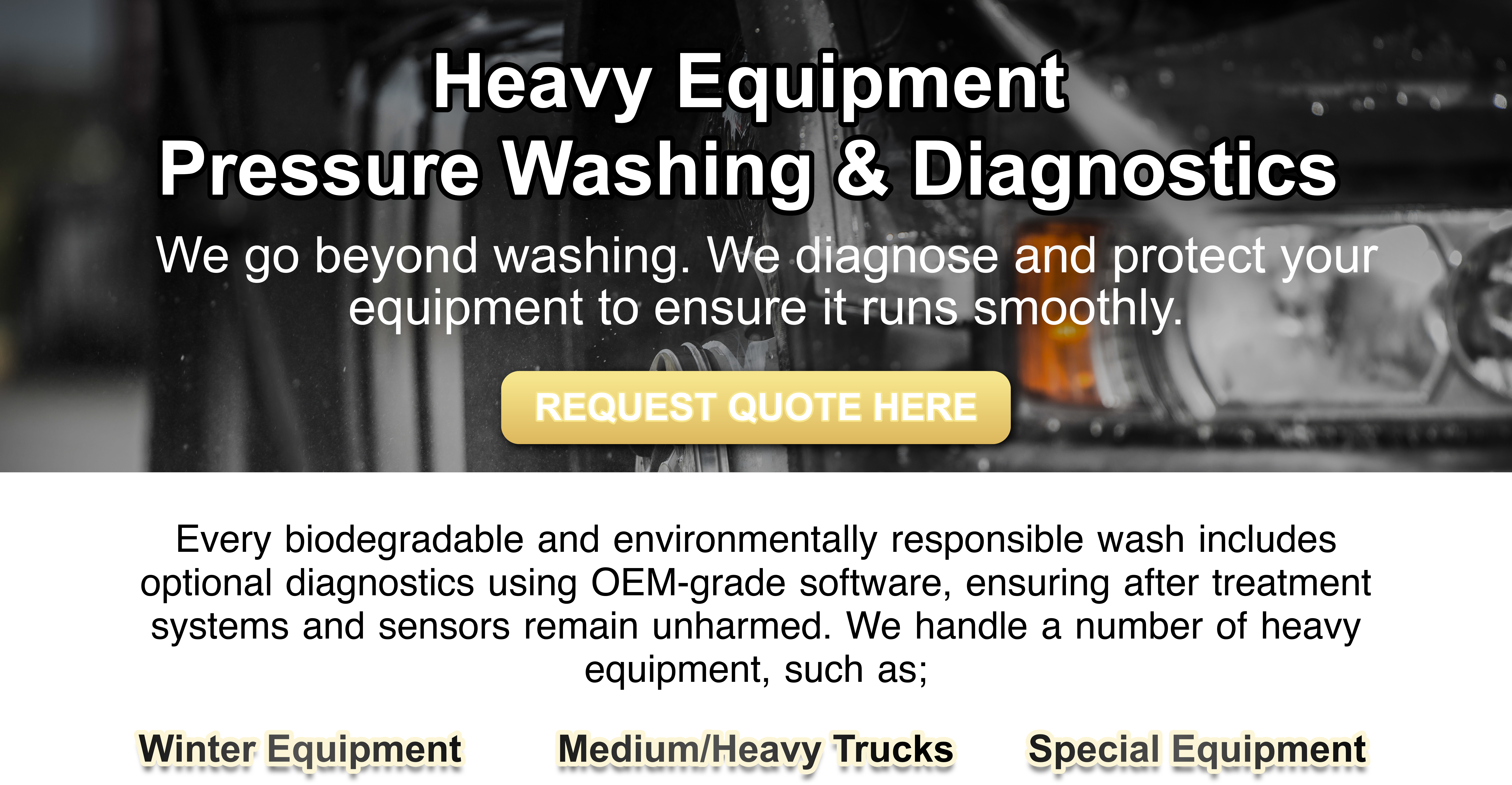 Our powerful pressure washing and top-notch diagnostics ensure your heavy equipment is clean, compliant, and running strong.