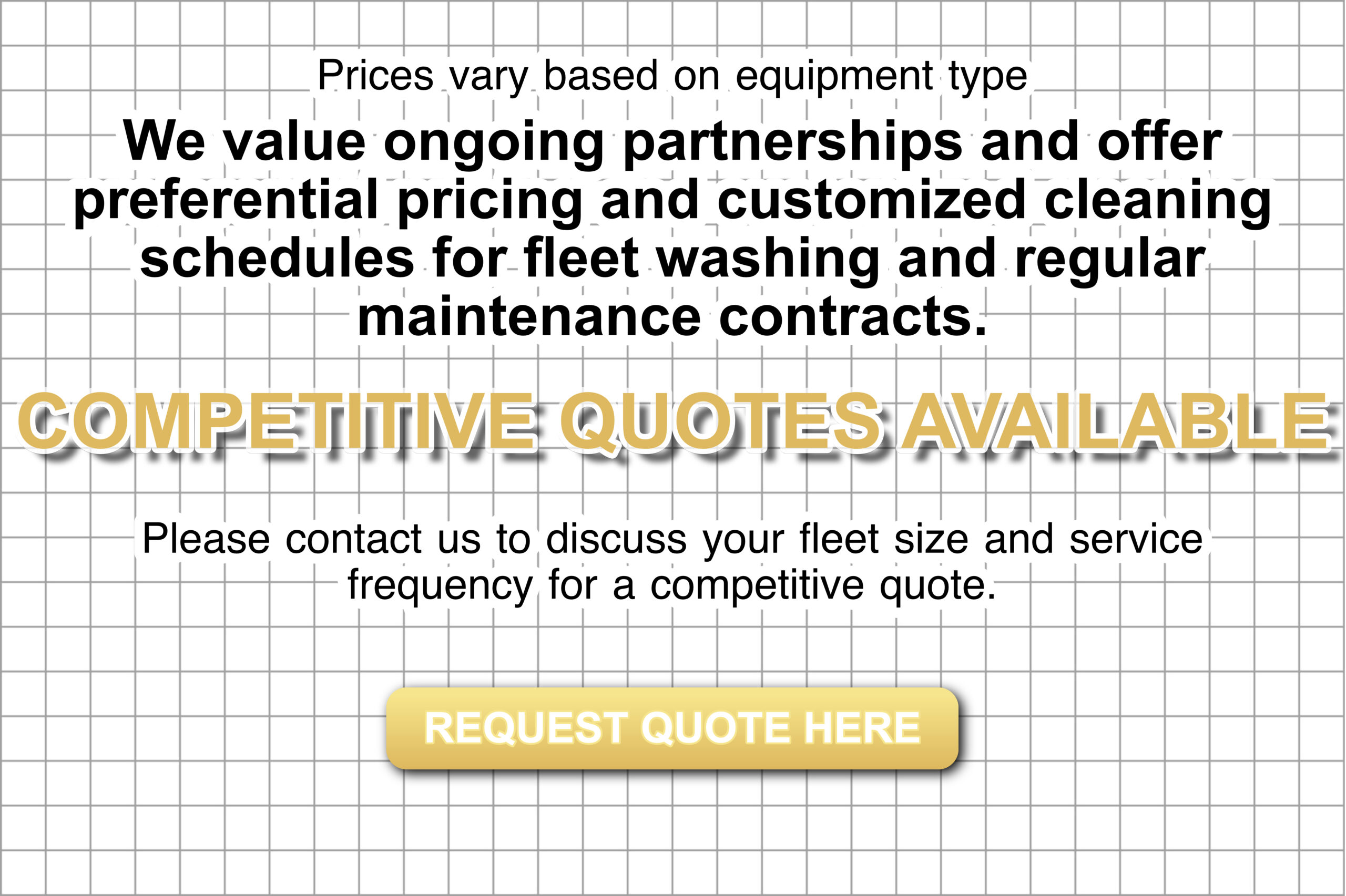 Yes, we absolutely do! We value ongoing partnerships and offer preferential pricing and customized cleaning schedules (e.g., weekly, bi-weekly, monthly) for fleet washing and regular maintenance contracts. This ensures your equipment consistently looks its best and receives ongoing protection. Please contact us to discuss your fleet size and service frequency for a competitive quote.